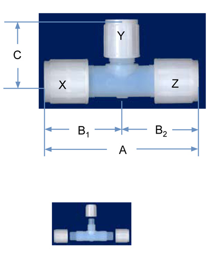 PFA Part No. | X | Y | Z | Orifice | A | B1 | B2 | C |